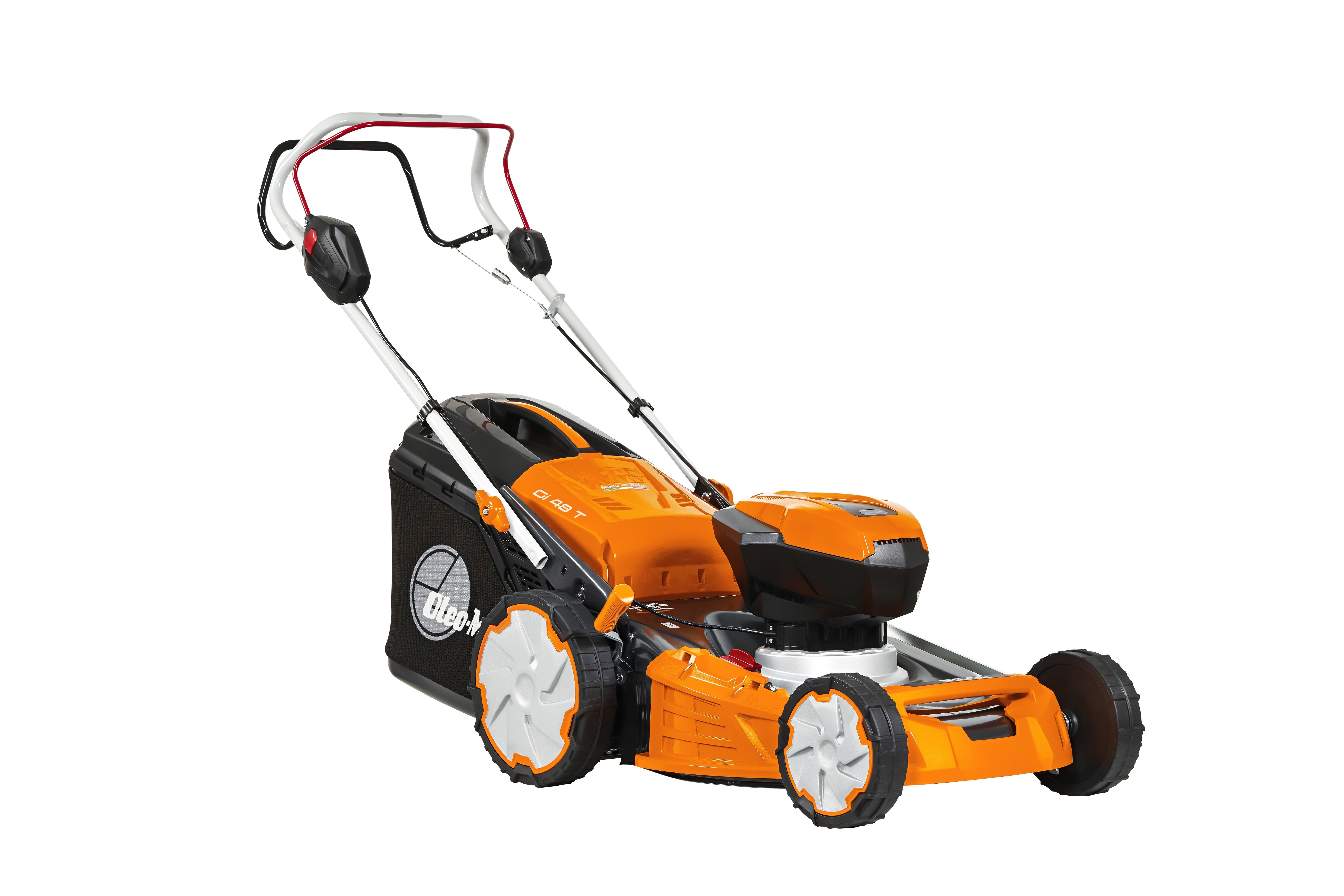 TOSAERBA BATTERIA OLEOMAC KIT Gi 44 P MOTORE BRUSHLESS VOLTAGGIO 40 V BATTERIA 5 Ah A SPINTA TAGLIO 41 cm CESTELLO 70 L PREZZO € 499,00